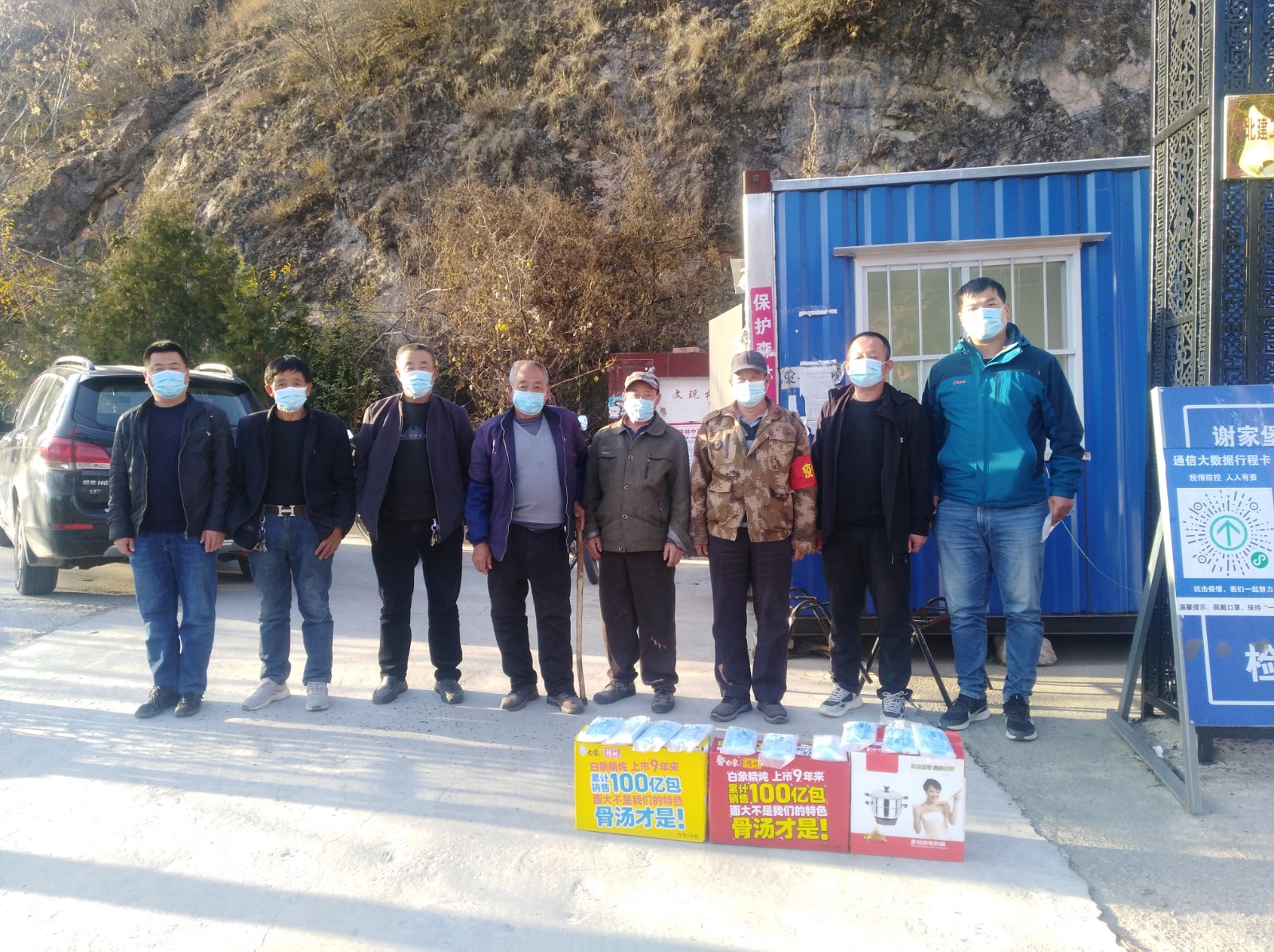 10月31日,得知检查站工作人员就餐不便的问题后,公司驻板铺村工作队全体成员进行了集体商议,决定给疫情防控检查站捐赠防疫物资。当天,工作队成员到超市购买了医用口罩10包、方便面2箱及多功能电饭锅一个送到了检查站,为防疫工作者们就餐提供了方便,为他们送上了一份来自企业的支持和温暖。