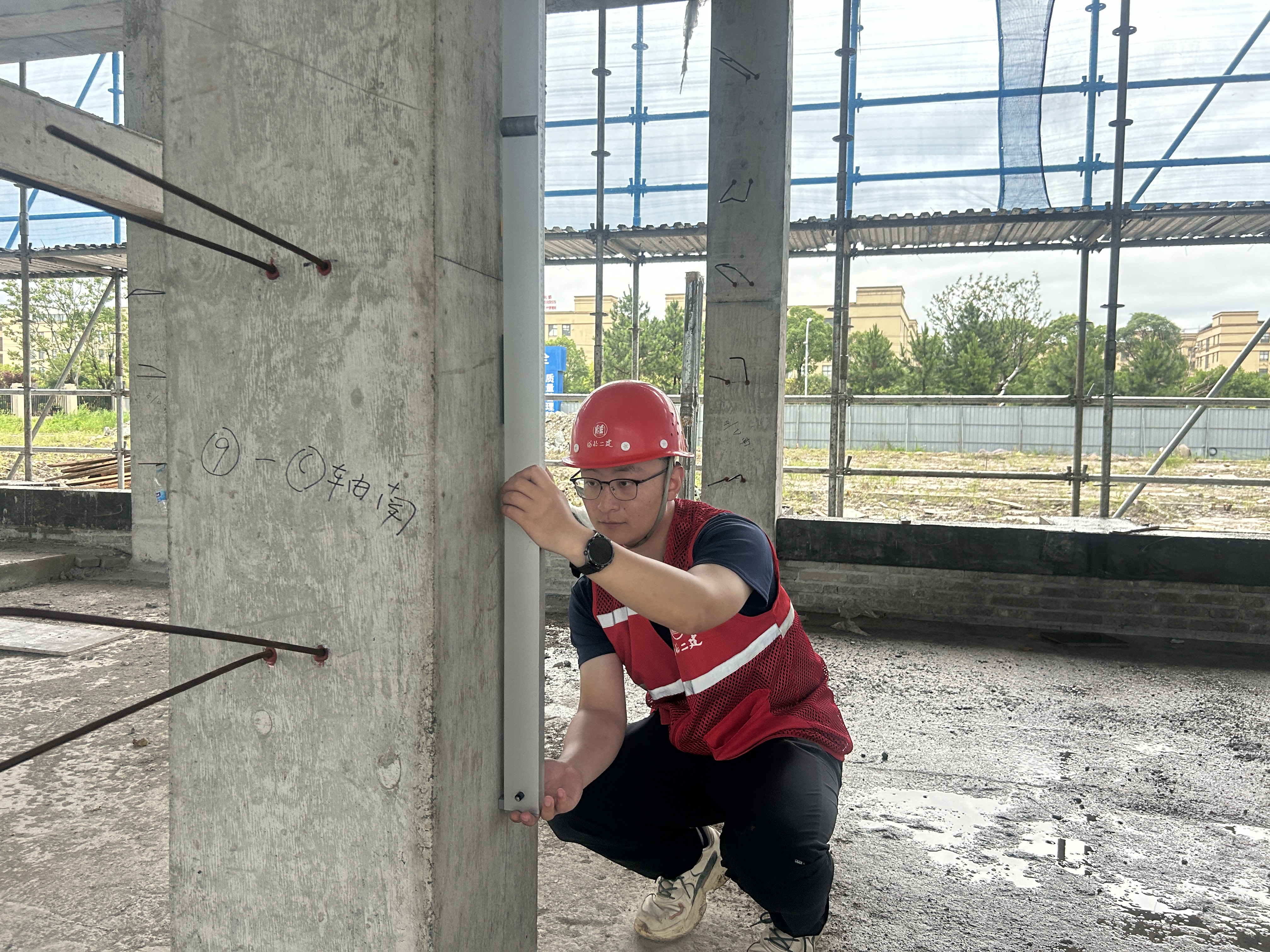为了保证桩基础施工质量,张赛栩还每日往返于各个桩机之间,检测桩基础的坐标、垂直度等施工数据,及时调整施工偏差。成桩后,他又及时组织桩基础抗压、抗拔和低应变等一系列检测试验,从头到尾全程跟踪参与,对桩基础施工质量进行严格检测把控。