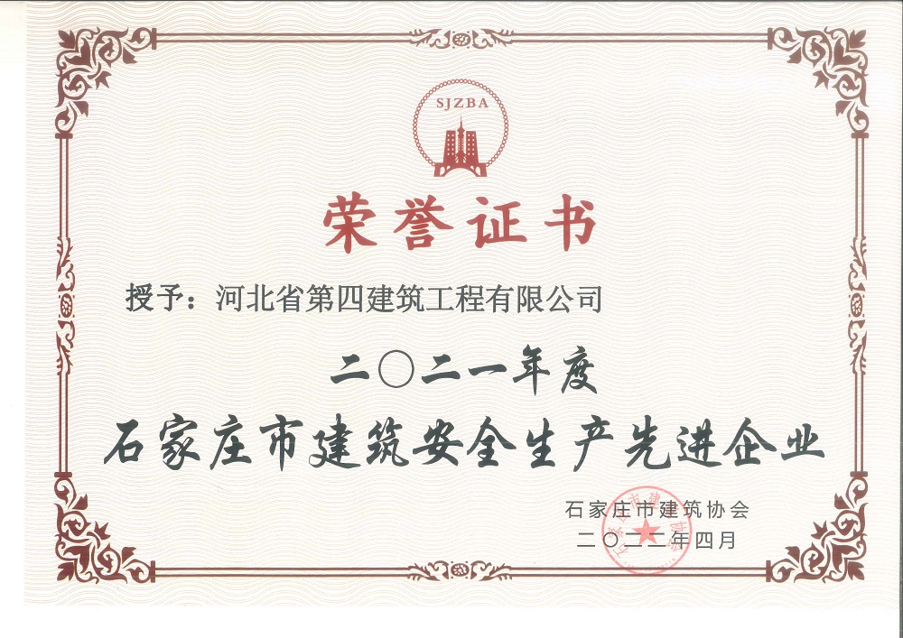 河北四建:2021年度石家庄市建筑业先进企业