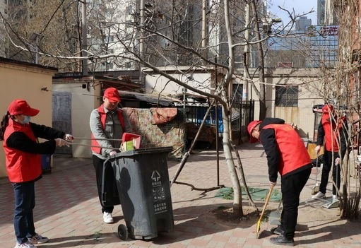 第一组也不示弱,大扫帚、小推车齐上阵,扫的扫、推的推,楼前楼后的垃圾和树叶被清理得一干二净。你们来给打扫卫生呢?是哪个单位?”“大妈,我们是河北四建的,今天是学雷锋日,我们来帮小区搞卫生。”他们正在5号楼前清理,一个头发花白的老大妈上前询问。