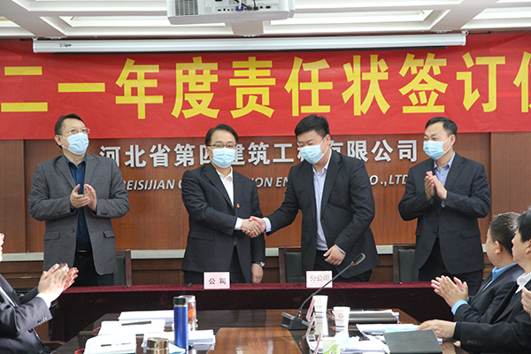 4月7日,公司举行责任状签订仪式,与分公司签订了2021年度经营管理责任书。2021年公司的主要发展目标是,完成建安总产值120亿元;签约合同额确保140亿元、力争150亿元。各单位要以时不我待的使命感和紧迫感,坚持“控风险、上规模、提效益”的工作主基调,围绕责任书指标,在市场中开拓新机,在改革中挖掘潜能,创新管理,提高效益,为实现公司高质量发展做出新的更大的贡献!(事业发展部)