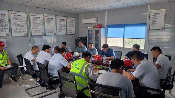 检查总结会上,唐志强肯定了项目有序、良好的施工状态,强调要以“五个抓好”推进项目管理进一步走深走实:一要抓好危大工程管控,了解当地危大工程的管理规定,抓好落实;二要抓好防暑、防汛、防雷和特殊天气的风险预控,把对施工生产的影响降到最小;三要抓好扬尘防治等工作,树立安全文明施工的良好形象;四要抓好劳务实名制管理,规避劳务风险;五要抓好工期履约策划,科学合理安排施工生产。
