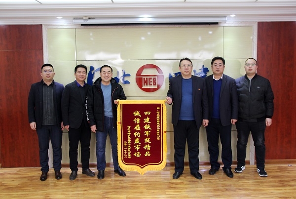 202217日上午,沧州沧海明珠旅游开发有限公司副总经理姬新强、项目推进办主任杨龙生一行人专程从沧州来到公司,感谢公司保节点、高质量地完成施工任务,并郑重地将写有“四建铁军筑精品 诚信履约赢市场”的锦旗送到公司党委副书记、总经理唐志强手中。公司副总经理张新煜、三分公司经理李书伟一同接待了姬新强一行。