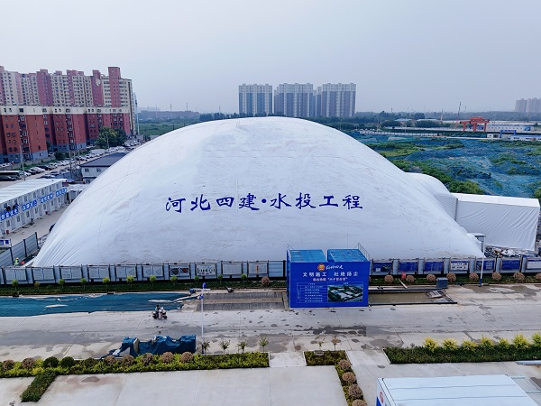 该项目基坑气膜长55米、宽60米、高20.5米,于2024年8月14日正式投产使用,具有安装简单、可循环利用、绿色环保及节能增效等显著特点,是分公司大力推行绿色施工、文明施工、环保施工的一项重要举措。(四分公司)